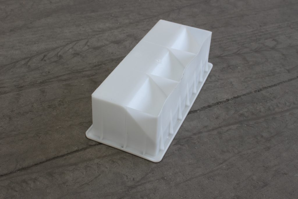 坡型設計的高速路牙石模具,主要服務于國家高速公路建設,采用工程聚丙烯樹脂原料,經注塑加工而來。采用此塑料高速路牙石模具來預制水泥路牙石相比傳統現場澆筑所帶來的道路鋪設效率提升明顯。
