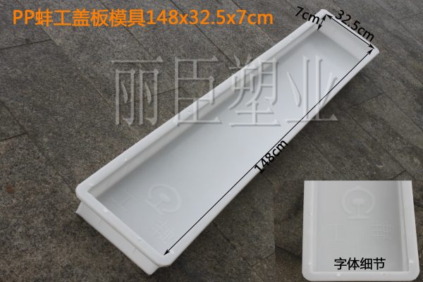 從產(chǎn)品圖中我們可以了解到這2款蓋板塑料模具主要用于蚌工高鐵建設(shè),其中長尺寸采用ABS塑料,相對較短尺寸則采用PP聚丙烯塑料加工而成。高鐵蓋板塑料模具均印制“蚌工”專屬字樣及鐵路圖標(biāo)。