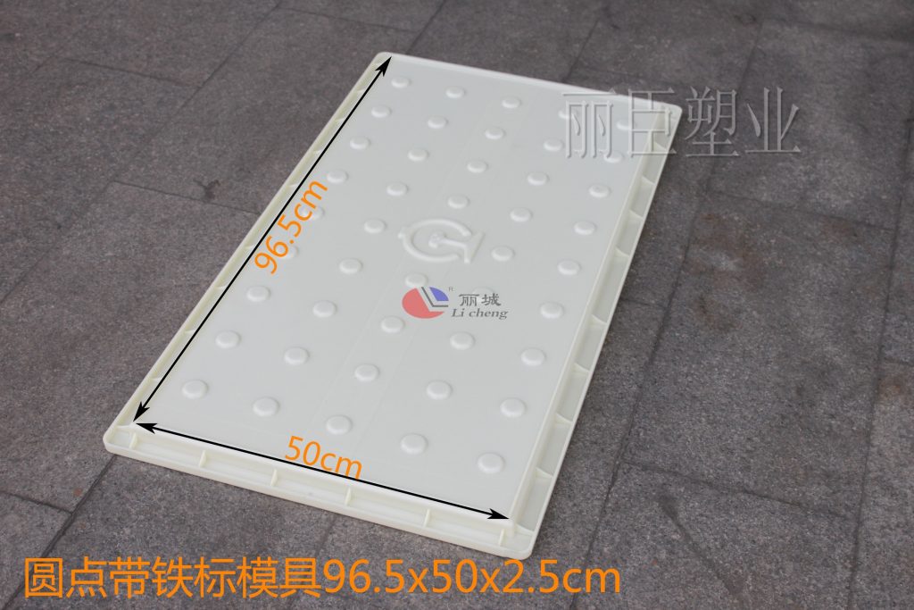 在澆筑圓點鐵標蓋板塑料模具過程中會在模具內部摻加一些鋼纖維,用以來增大角質成型的水泥模具砼制品的承重能力,采用RPC材料澆筑成型的砼制品,可以達到延長結構壽命,大幅減少維護費用,降低工程建設和使用的綜合造價,所以在對于高鐵市政等電纜槽保護的蓋板上使用最為廣泛。