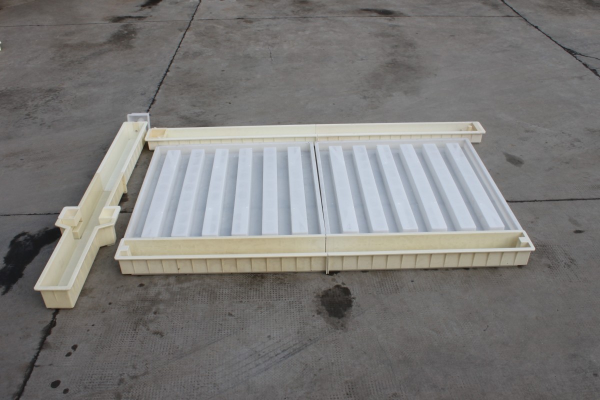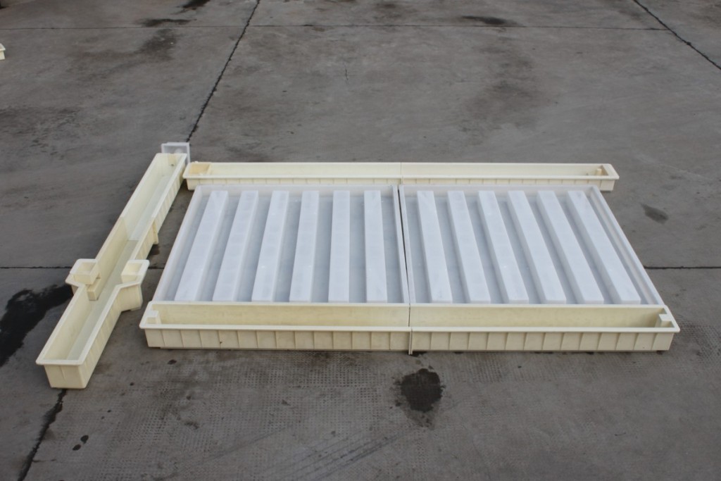 3.路基防護(hù)柵欄欄片模具則采用的的PP聚丙烯塑料材質(zhì),在整套路基防護(hù)柵欄模具中共由2塊組成,尺寸為149.5*140.5*9cm。關(guān)于欄片模具為何也不采用ABS塑料來制作,主要原因就是欄片自身面積太大,而ABS材質(zhì)的特性為密碼高,強(qiáng)度大,但是韌性不是很好,在實(shí)際操作過程中相對更為容易損壞,所以具備高韌性的PP聚丙烯材質(zhì)更為適合。